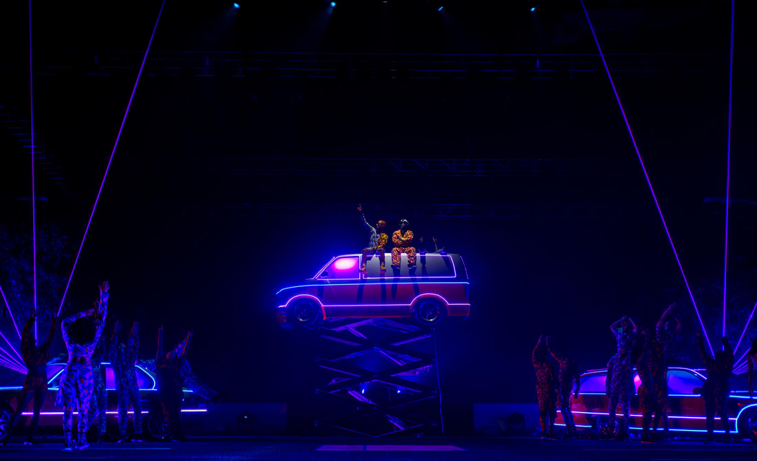 The trio were situated on a van in the back of the stage at the beginning of the show. After a few tracks, Shay joined the dancers to turn up, then later Pharrell. Before "Don't Don't Do It," a collaboration with Kendrick, began, Pharrell explained the inspiration behind the song. He said it was made after the tragic fatal police shooting of Keith Lamont Scott.